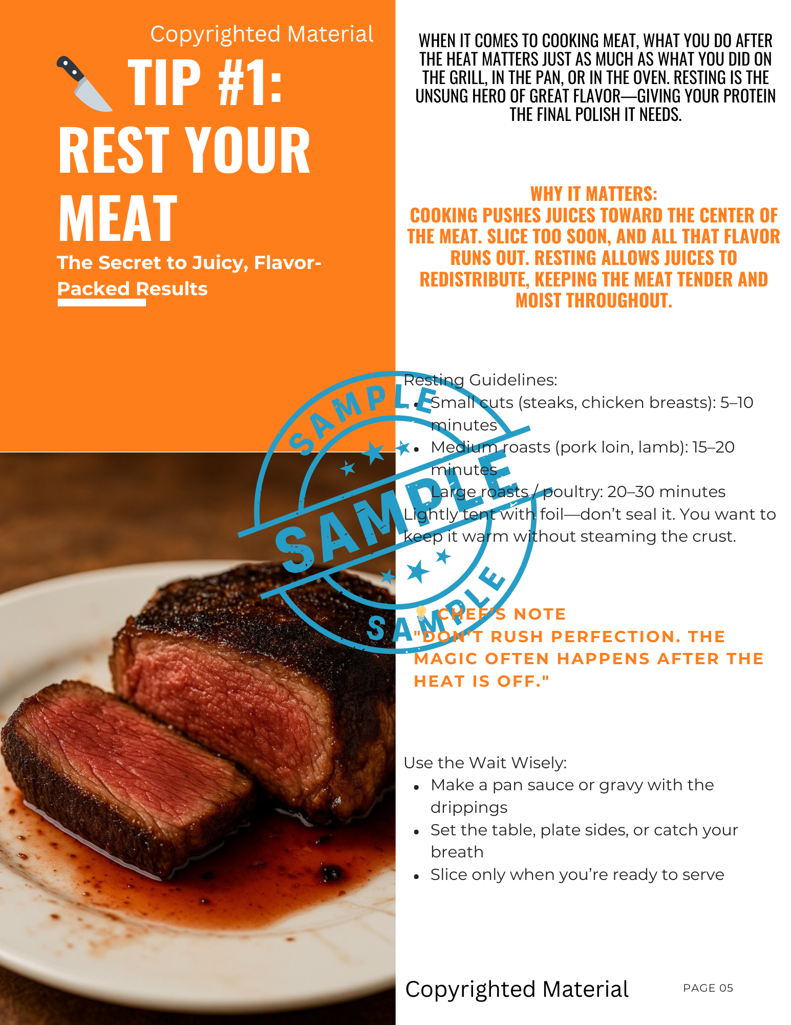Inside, you’ll find 10 masterfully curated recipes—from golden herb-roasted chicken to pan-seared ribeye with garlic butter—each paired with tips, chef’s notes, and a philosophy rooted in patience, heat, and passion. Whether it’s the slow braise of tender lamb shanks or the crisp perfection of roast turkey, these dishes aren’t just meals; they’re statements.