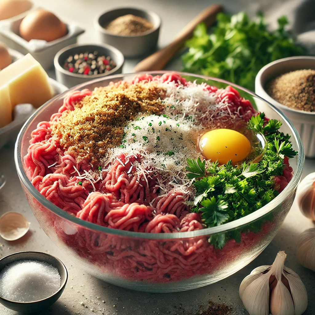 In a large bowl, combine ground beef, breadcrumbs, grated Parmesan cheese, minced garlic, chopped parsley, egg, salt, and pepper. Mix until just combined; avoid overmixing to keep the meatballs tender.For extra flavor, consider adding Italian seasoning or crushed red pepper flakes. -